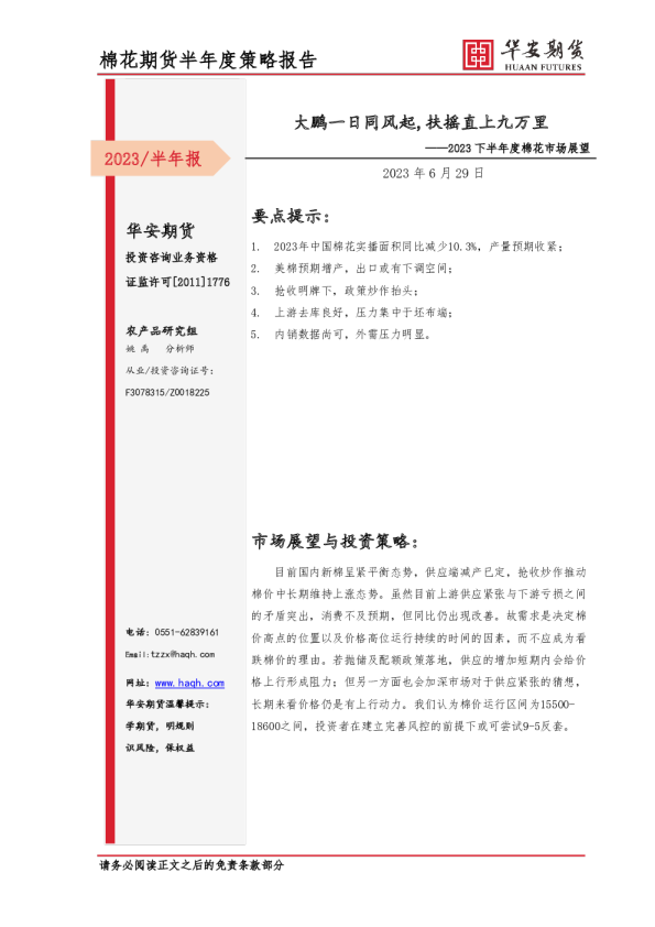 2023下半年度棉花市场展望:大鹏一日同风起,扶摇直上九万里