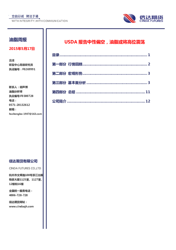 周度报告:USDA报告中性偏空 关注马棕油月度报告