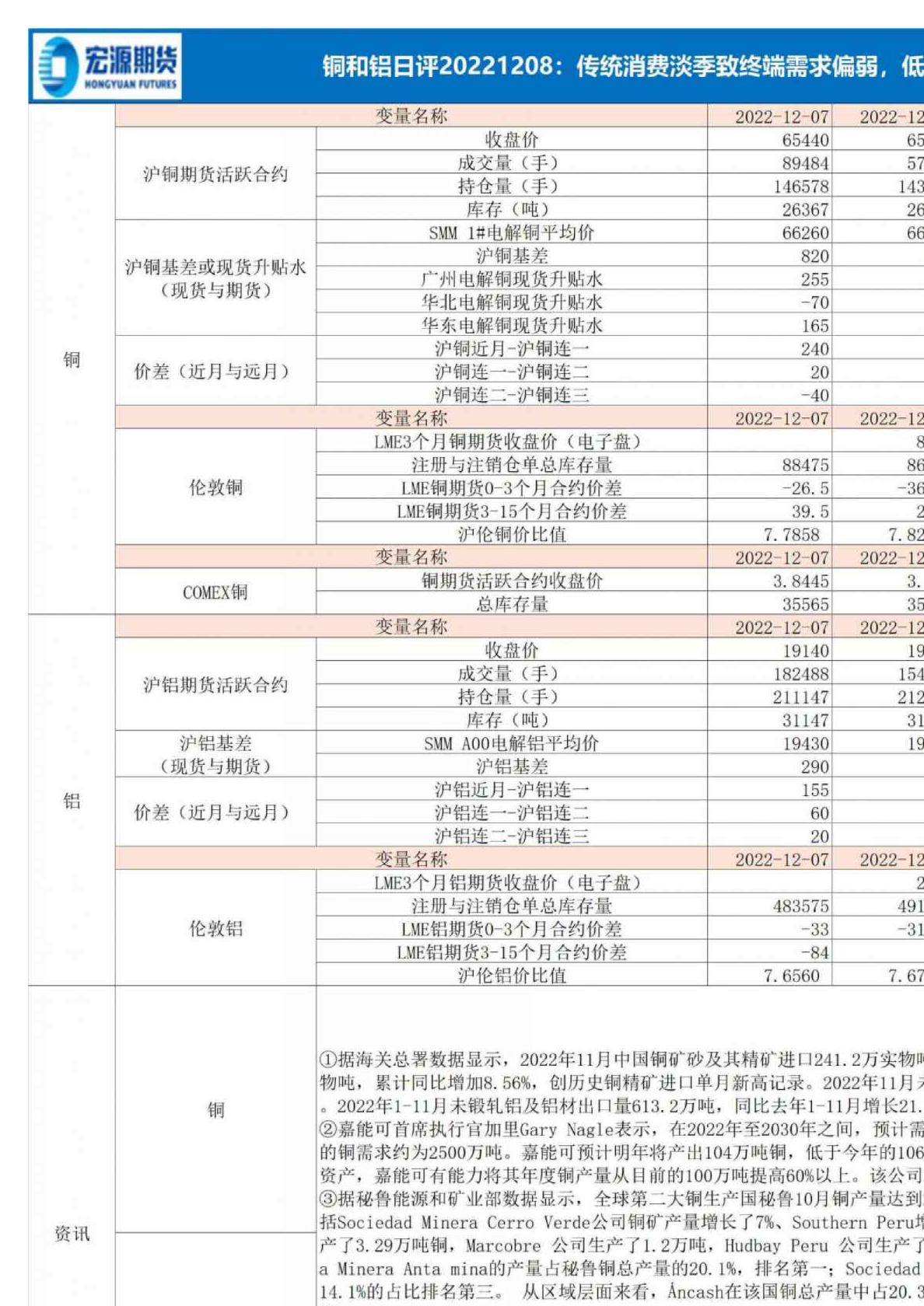铜和铝日评:传统消费淡季致终端需求偏弱,低库存和潜在冬补支撑有色价格