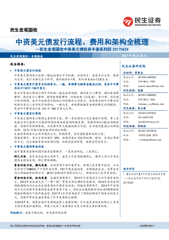 民生宏观固收中资美元债投资手册系列四:中资美元债发行流程、费用和架构全梳理